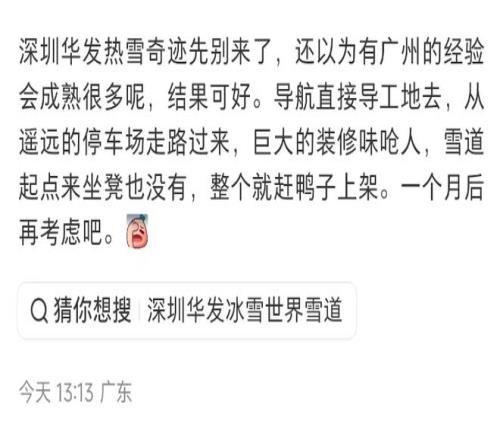 作为深圳重点项目,华发冰雪世界的进展一直吸引着市场的关注。华发股份此前曾对外宣称该项目预计于第四季度开业,市场猜测可能到11月份,而最终实际开业时间早于预期。但开业节奏的提前,也暴露除部分配套待改善的问题。