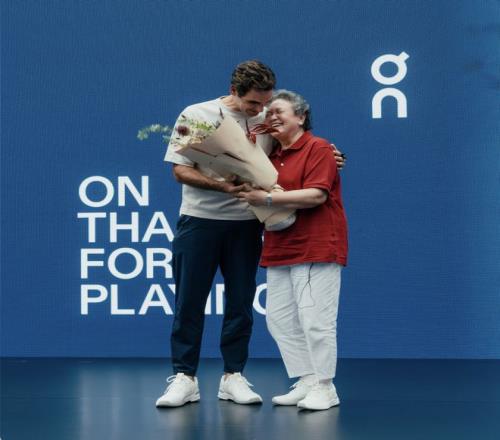 图 /2025 年 On 昂跑「致敬每一场」活动中,费德勒为刘运智献上花束