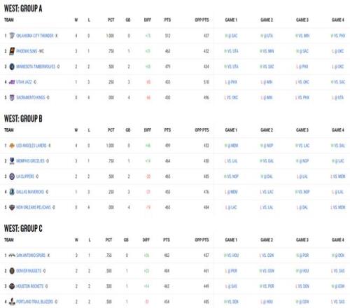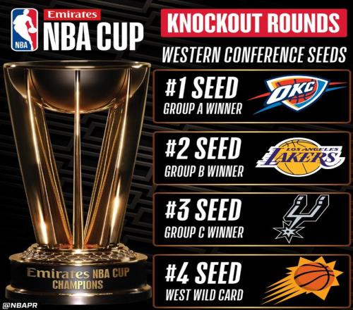 NBA杯八强出炉!东西部前四种子排名确定雷霆夺冠赔率断崖第一