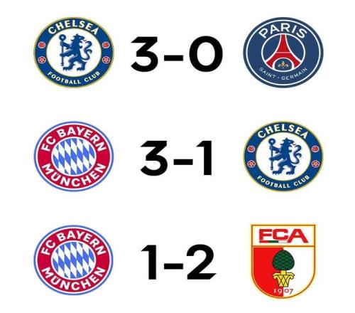 在奥格斯堡官方晒出的“比分食物链”里,切尔西3-0战胜巴黎(上赛季世俱杯决赛),拜仁3-1战胜切尔西(本赛季欧冠),而奥格斯堡则2-1战胜拜仁,站上了“食物链”顶端。