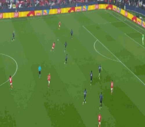 下半场回来本菲卡的反击依然踢得有声有色,第54分钟,帕夫利季斯回撤接应分向左路,谢尔德鲁普持球面对阿森西奥防守自信内切抽射上演梅开二度,1:3!谢尔德鲁普梅开二度,皇马2球落后,而穆里尼奥也没有过多庆祝。阿韦罗亚不敢怠慢,随即立马换上卡马文加和罗德里戈;第58分钟,居莱尔右路倒三角传中,贝林厄姆前点吸引防守,二点的姆巴佩无人盯防扫射回敬一个梅开二度,2:3!